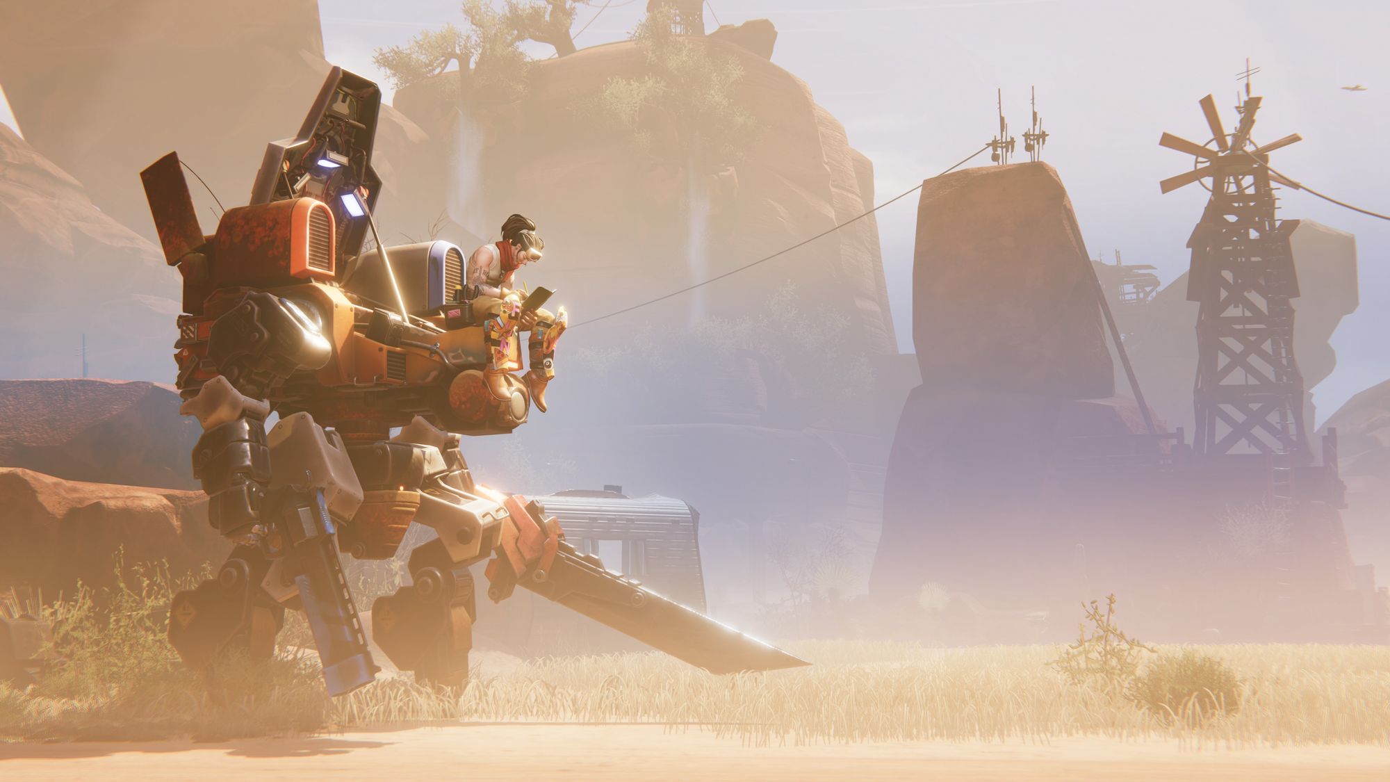 メカのバトルやカスタマイズに加え、ライトな農業&拠点づくり要素まで楽しめる、肩越し3人称視点のアクションゲーム。プレイヤーは、才能豊かな兵士であり腕利きのメカパイロットながらも、心に傷を負った元軍人クレムとなり、その人生を歩みます。