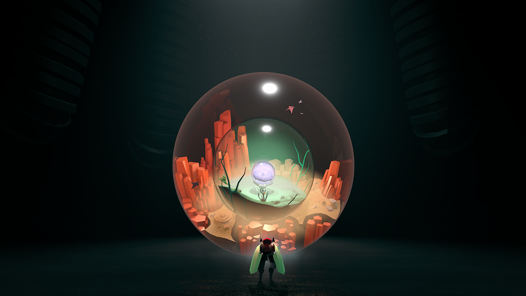 LIMBOとINSIDEのリード・ゲームプレイデザイナーJeppe Carlsenが送る『COCOON』は、世界の中にある世界を行き来するアドベンチャーゲーム。 世界へ飛び込むシステムを理解して複雑なパズルを解き、宇宙の謎を暴こう。