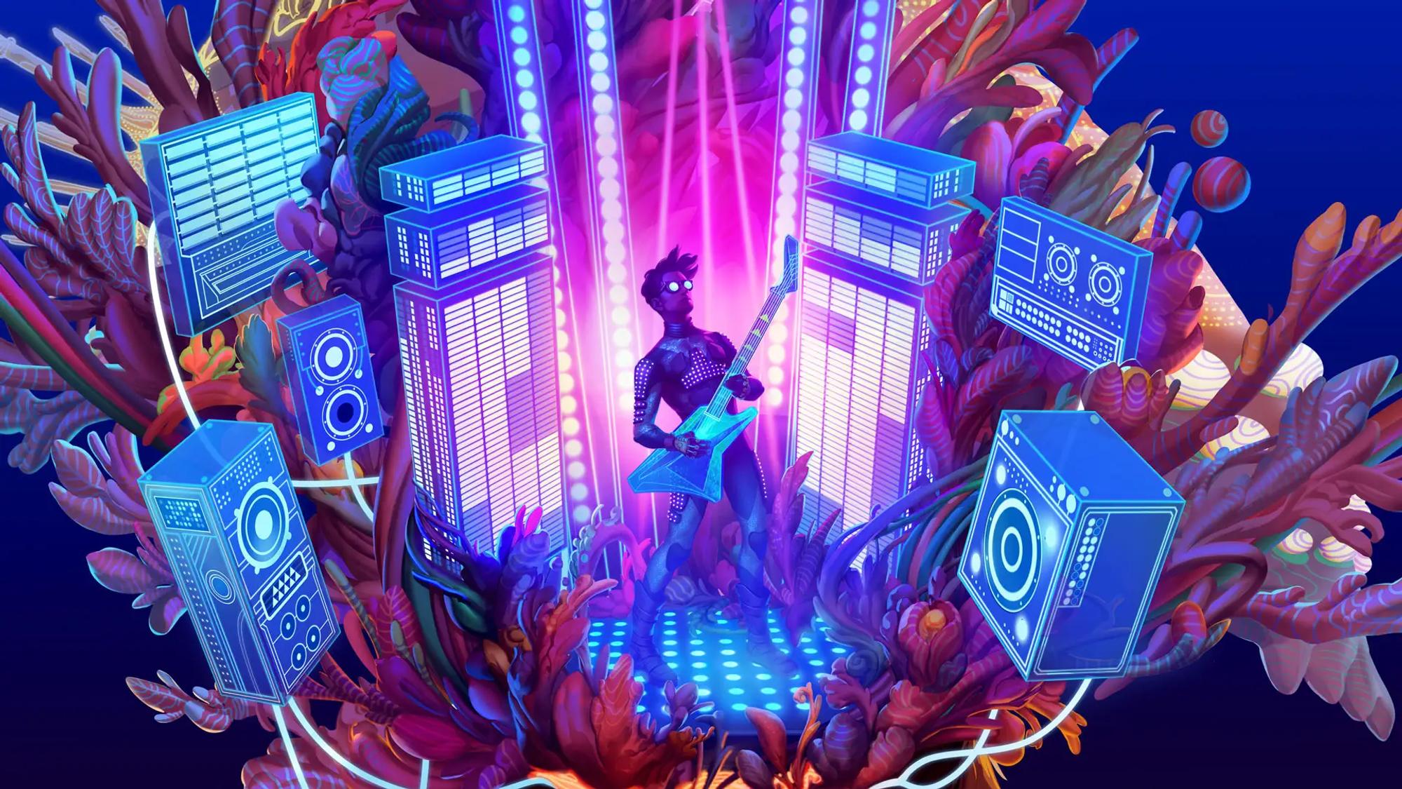 - ギターをかき鳴らし、空へ舞い、ダンスしながら多元宇宙を周遊しよう。自分の動きでサウンドを作り、そのサウンドを奏でる空間を次々と横断していこう。世界が丸ごと楽器になったような体験。