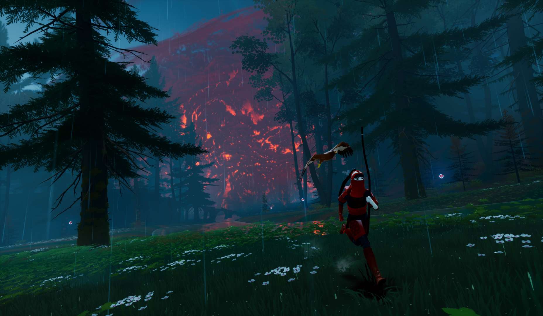 あなたは狩人、弓の名手。世界から闇の呪いを祓う使命を帯びてこの島にやってきた。謎に満ちた深い森を探索しながら、相棒のワシとの絆を深めていこう。遺跡に仕掛けられた数々のパズルを解き、技量を尽くして死闘を勝ち抜け。あなたが狩るのは呪われた精霊たち――だが油断すれば狩られるのはあなたの方だ。ワシとの絆と世界の運命は、そのあやうい均衡にかかっている。